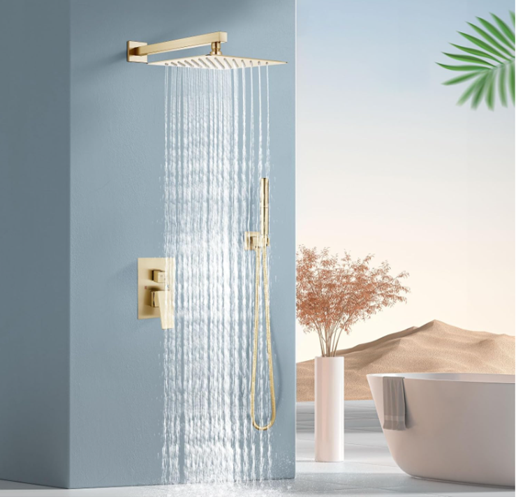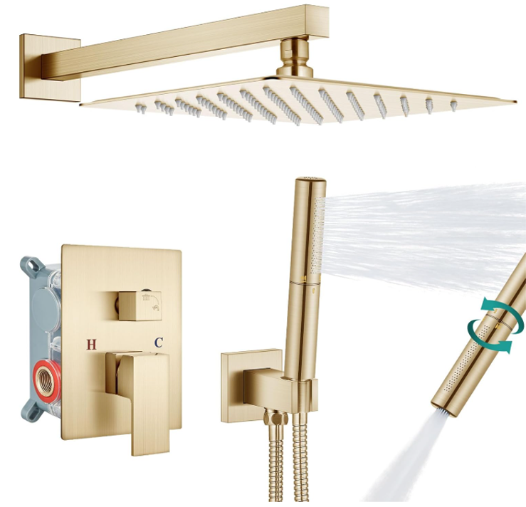 - What’s Included:This bathroom shower faucet set includes shower head,handheld shower,shower arm wand,shower hose,shower holder and brass rough-in valve.Come with clear instruction